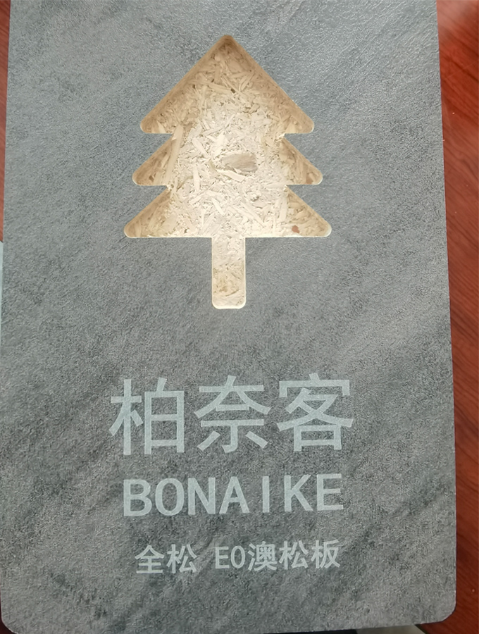 柏奈客E0澳松板面光潔平整,無干花、濕花、鼓泡、透底等現(xiàn)象;刨花形態(tài)標準、一致性好,斷面蜂窩少,鋸切幾乎沒有芯層或鋸末掉落;表層均勻薄壁,切割不崩邊,不費刀。